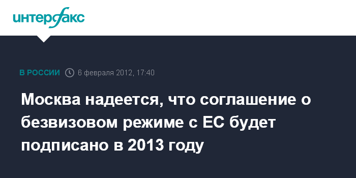Москва надеется, что соглашение о безвизовом режиме с ЕС будет подписано в 2013 году