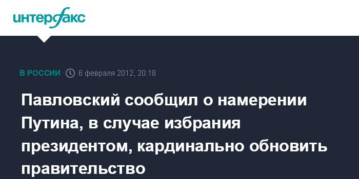 Павловский сообщил о намерении Путина, в случае избрания президентом, кардинально обновить правительство