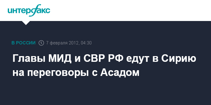 Главы МИД и СВР РФ едут в Сирию на переговоры с Асадом