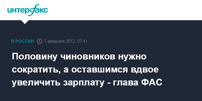 Половину чиновников нужно сократить, а оставшимся вдвое увеличить зарплату - глава ФАС