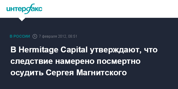 "МВД намерено посмертно осудить Магнитского и заочно Браудера (глава Hermitage Capital - ИФ). Об этом стало известно из письма следователя МВД Бориса Кибиса, направленного родственникам Сергея Магнитского и адвокатам Hermitage Capital", - сказал сотрудник фонда во вторник "Интерфаксу".