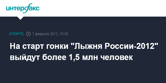 Москва. 7 февраля. INTEFAX.RU - Всероссийская массовая лыжная гонка "Лыжня России-2012" пройдет 12 февраля в 68 субъектах федерации; по прогнозу Министерства спорта, туризма и молодежной политики РФ в ней примут участие более 1,5 млн человек всех возрастов, сообщил глава Минспорттуризма Виталий Мутко во вторник