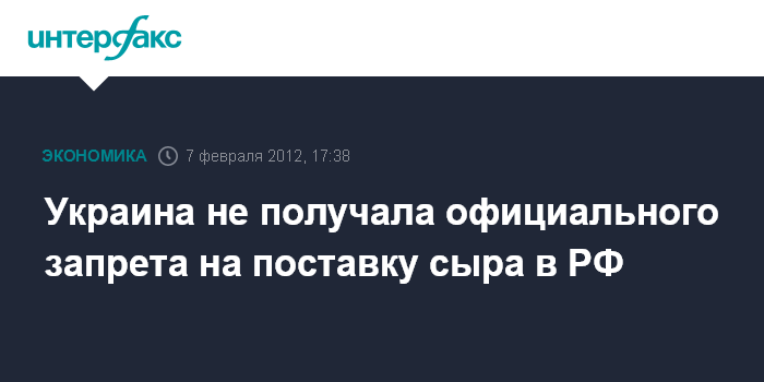 Киев. 7 февраля. INTERFAX.RU - Украинская сторона не располагает официальной информацией о введении Роспотребнадзором запрета на поставку некоторыми украинскими производителями сыров в Россию, сообщил глава Государственной ветеринарной и фитосанитарной службы Украины Иван Бисюк агентству "Интерфакс-Украина" во вторник.