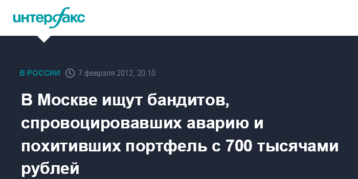 Москва. 7 февраля. INTERFAX.RU - Грабители инсценировали мелкое ДТП в центре Москвы, чтобы похитить у мужчины крупную сумму денег, сообщил "Интерфаксу" источник в правоохранительных органах.