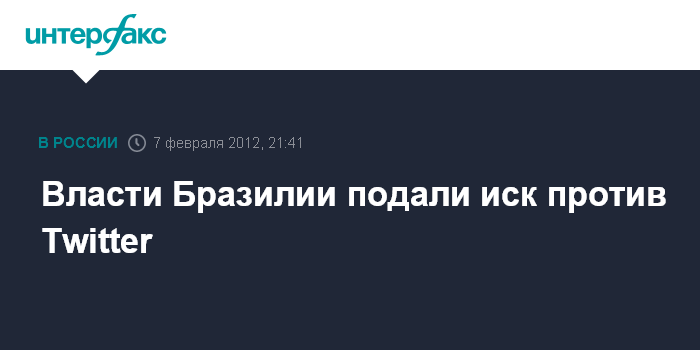 Лондон. 7 февраля. INTERFAX.RU - Бразильское правительство подало иск против веб-сайта Twitter, потребовав удалять микроблоги, в которых бразильских автомобилистов предупреждают об участках дорог, где их могут засечь камеры или сотрудники дорожной полиции, сообщает во вторник BBC.