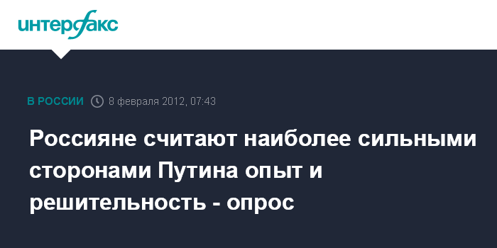 Россияне считают наиболее сильными сторонами Путина опыт и решительность - опрос