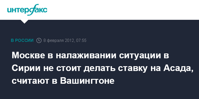 Москве в налаживании ситуации в Сирии не стоит делать ставку на Асада, считают в Вашингтоне