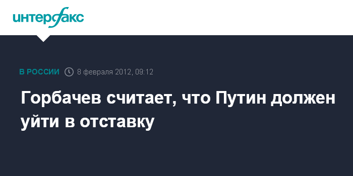 Москва. 8 февраля. INTERFAX.RU - Экс-президент СССР Михаил Горбачев считает, что политическую систему в России необходимо менять. В интервью телеканала "Дождь" ведущий адресовал ему вопрос, не боится ли, по его мнению, премьер-министр РФ Владимир Путин коллапса политической системы. Горбачев ответил: "Наверно. Такая система, как путинская - только и есть объект разрушения, ее надо разрушить". Но потом политик оговорился: "Систему надо менять".