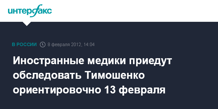 Киев. 8 февраля. INTERFAX.RU - Документы, необходимые для международной группы медиков, которые будут обследовать экс-премьера Юлию Тимошенко, оформляются, иностранные врачи прибудут в страну ориентировочно 13 февраля, сообщил агентству "Интерфакс-Украина" информированный источник.