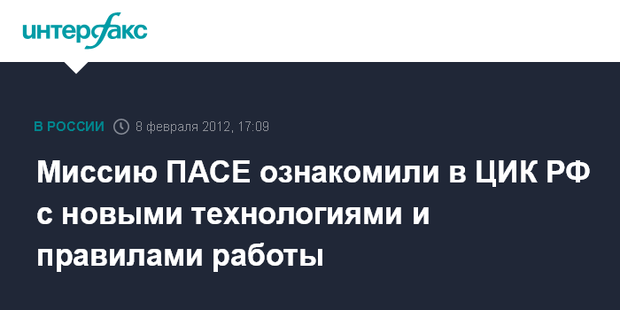 Он добавил, что предэлекторальная миссия ПАСЕ в составе пяти человек встретилась в среду с главой ЦИК Владимиром Чуровым. В ходе встречи участники миссии познакомились с работой демонстрационного избирательного участка, а также организацией видеонаблюдения. Эта технология их очень заинтересовала, они отметили, что таких прецедентов пока нигде нет.
