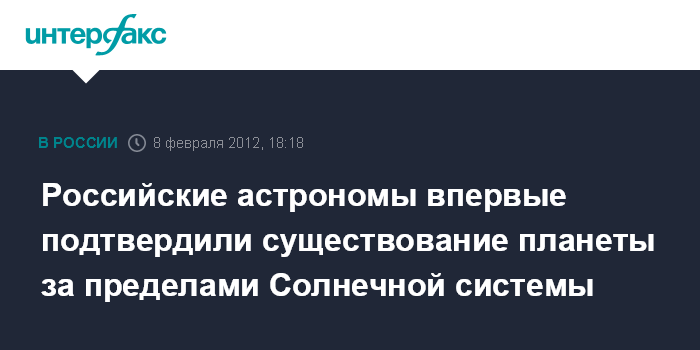 Санкт-Петербург. 8 февраля. INTERFAX.RU – Ученые Главной (Пулковской) астрономической обсерватории в Петербурге подтвердили существование одной из экзопланет (планета за пределами Солнечной системы – ИФ).