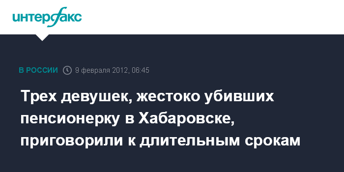Трех девушек, жестоко убивших пенсионерку в Хабаровске, приговорили к длительным срокам