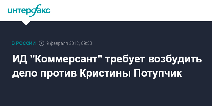 ИД "Коммерсант" требует возбудить дело против Кристины Потупчик