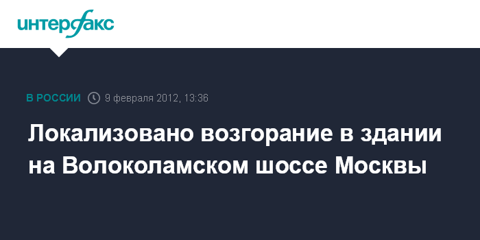 Локализовано возгорание в здании на Волоколамском шоссе Москвы