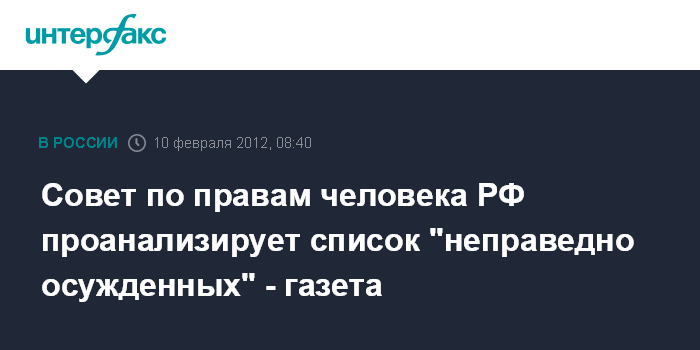 Совет по правам человека РФ проанализирует список "неправедно осужденных" - газета