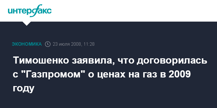 Тимошенко заявила, что договорилась с "Газпромом" о ценах на газ в 2009 году
