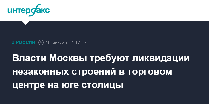 Власти Москвы требуют ликвидации незаконных строений в торговом центре на юге столицы