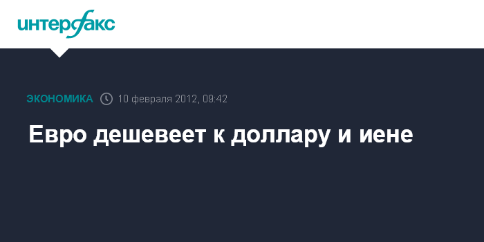 10 февраля. INTERFAX.RU - Евро дешевеет к доллару США, так как министры финансов Еврозоны (Еврогруппа) отложили одобрение второго пакета финансовой помощи для Греции до следующей недели, чтобы дать возможность парламенту страны принять обещанные кредиторам меры экономии, сообщает агентство Bloomberg.