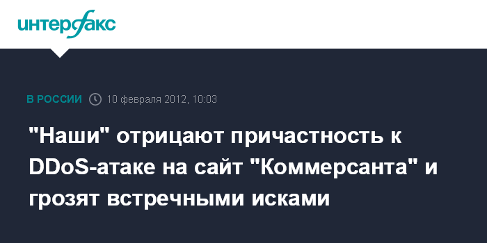 "Наши" отрицают причастность к DDoS-атаке на сайт "Коммерсанта" и грозят встречными исками