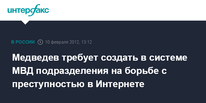 Москва. 10 февраля. INTERFAX.RU - Президент РФ Дмитрий Медведев потребовал от МВД больше внимания уделять преступности в информационном пространстве, а от всех полицейских начальников - уметь пользоваться Интернетом.