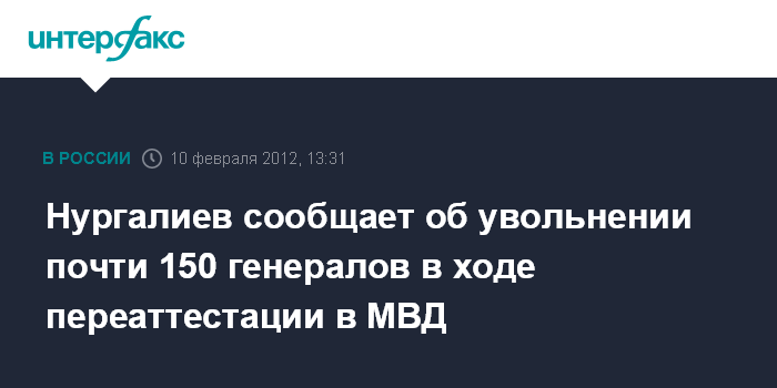 Нургалиев сообщает об увольнении почти 150 генералов в ходе переаттестации в МВД
