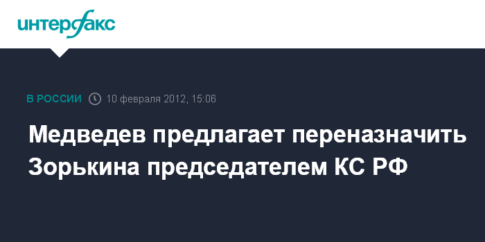 Медведев предлагает переназначить Зорькина председателем КС РФ
