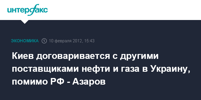 Киев договаривается с другими поставщиками нефти и газа в Украину, помимо РФ - Азаров