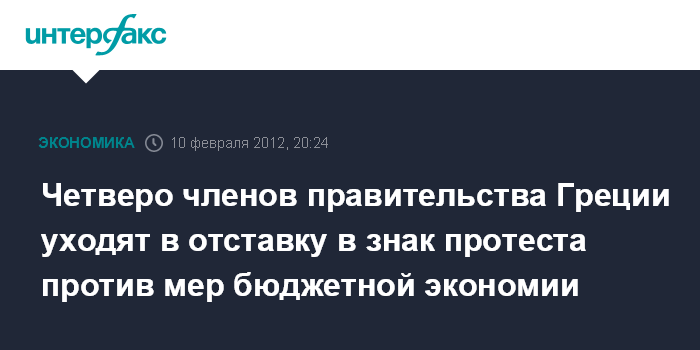 Четверо членов правительства Греции уходят в отставку в знак протеста против мер бюджетной экономии