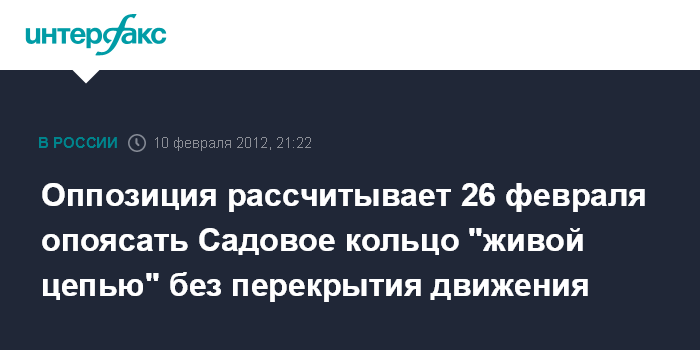 Оппозиция рассчитывает 26 февраля опоясать Садовое кольцо "живой цепью" без перекрытия движения