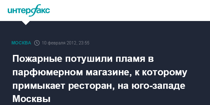 Москва. 10 февраля. ИНТЕРФАКС - Пожар в парфюмерном магазине с пристроенным к нему рестораном на юго-западе Москвы ликвидирован, сообщил вечером в пятницу "Интерфаксу" источник в правоохранительных органах.