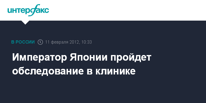 Токио. 11 февраля. INTERFAX.RU - Император Японии Акихито в субботу поступил в клинику Токийского универстета на обследование в связи с ишемической болезнью сердца, сообщает императорская канцелярия.