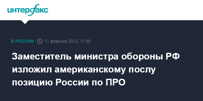 Заместитель министра обороны РФ изложил американскому послу позицию России по ПРО