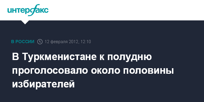 Ашхабад. 12 февраля. INTERFAX.RU - К 12.00 на выборах президента Туркменистана в целом по стране проголосовало 47,97 % избирателей.