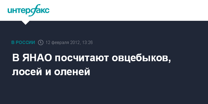 Салехард. 12 февраля. INTERFAX.RU - Ямало-Ненецкий автономный округ в 2012-2013 годах проведет авиаучет диких лосей, северных оленей и овцебыков для оценки их численности, сообщил агентству "Интерфакс-Урал" начальник отдела по работе с особо охраняемыми природными территориями департамента природно-ресурсного регулирования, лесных отношений и развития нефтегазового комплекса ЯНАО Дмитрий Замятин.