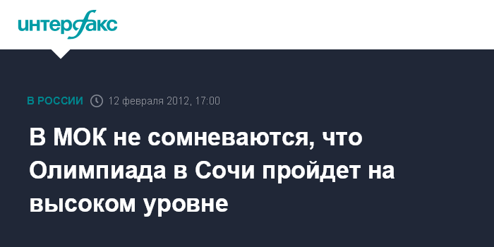 Красная Поляна (Сочи). 12 февраля. INTERFAX.RU - В Международном Олимпийском комитете (МОК) уверены, что подготовка к зимним Олимпийским играм 2014 года в Сочи будет завершена в срок.