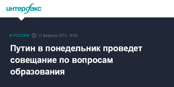 Москва. 12 февраля. INTERFAX.RU - Премьер РФ Владимир Путин в понедельник, 13 февраля, посетит Курганскую область, где проведет совещание, посвященное модернизации региональных систем общего образования, сообщили в пресс-службе правительства в воскресенье.