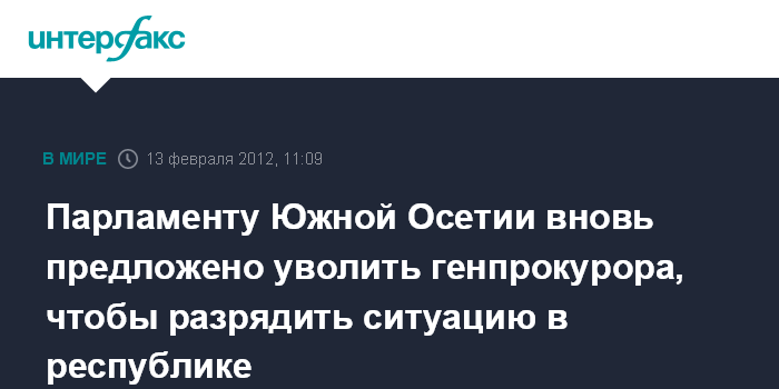 Парламенту Южной Осетии вновь предложено уволить генпрокурора, чтобы разрядить ситуацию в республике