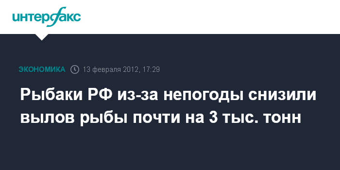 Москва. 13 февраля. INTERFAX.RU - Российские рыбаки, по данным на 13 февраля, впервые за последние годы снизили вылов рыбы по сравнению с соответствующим периодом прошлого года.