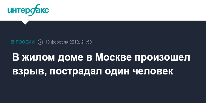 Москва. 13 февраля. INTERFAX.RU - Один человек пострадал в результате взрыва в жилом доме на юге Москвы, сообщил "Интерфаксу" источник в правоохранительных органах в понедельник. "Взрыв произошел в жилом доме по адресу улица Ялтинская, дом 2, в результате взрыва пострадал один человек", - сказал собеседник агентства.