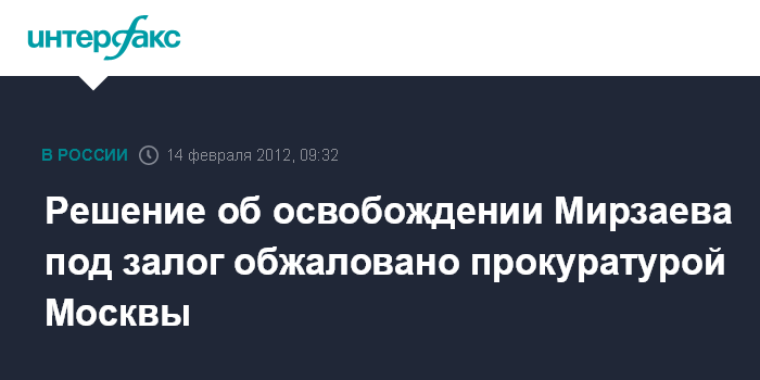 Решение об освобождении Мирзаева под залог обжаловано прокуратурой Москвы
