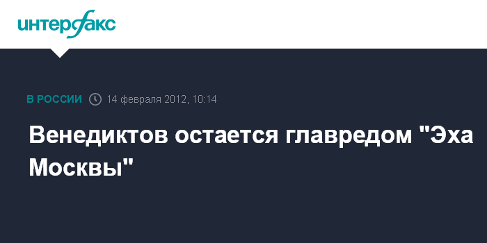 Москва. 14 февраля. INTERFAX.RU - Согласно уставу радиостанции "Эхо Москвы" Алексей Венедиктов еще два года будет оставаться главным редактором.