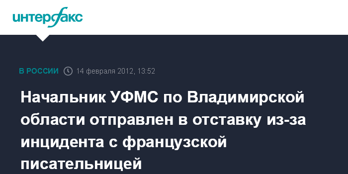 Начальник УФМС по Владимирской области отправлен в отставку из-за инцидента с французской писательницей