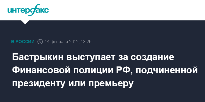 Москва. 14 февраля. INTERFAX.RU - Председатель Следственного комитета РФ Александр Бастрыкин предлагает создать на базе Росфинмониторинга новое ведомство - Финансовую полицию. "Предпочтительной видится модель реформы, предполагающей создание в стране качественно нового государственного органа, который осуществлял бы в полном объеме функцию по выявлению и раскрытию преступлений, посягающих на финансовую систему государства, - Финансовой полиции РФ", - заявил Бастрыкин в своем блоге на сайте СК РФ.