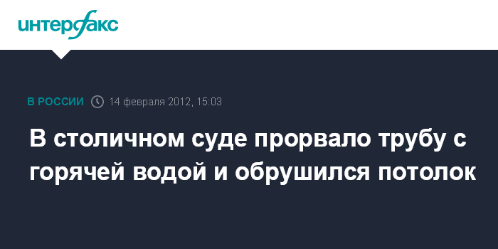 "Во вторник днем произошел прорыв трубы горячего водоснабжения на улице Фридриха Энгельса, д. 32, где располагаются помещения Измайловского райсуда Москвы", - сказал собеседник агентства.