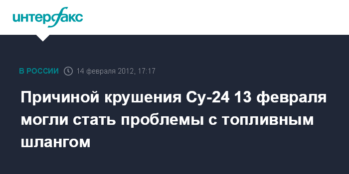 Москва.14 февраля. INTERFAX.RU - СКР установил первые обстоятельства крушения Су-24М в Курганской области 13 февраля.