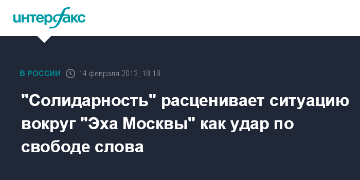 Москва. 14 февраля. INTERFAX.RU - В оппозиционном движении "Солидарность" критически отнеслись к планам "Газпром-Медиа" изменить состав совета директоров радиостанции "Эхо Москвы".