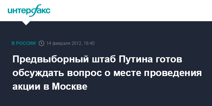 Предвыборный штаб Путина готов обсуждать вопрос о месте проведения акции в Москве