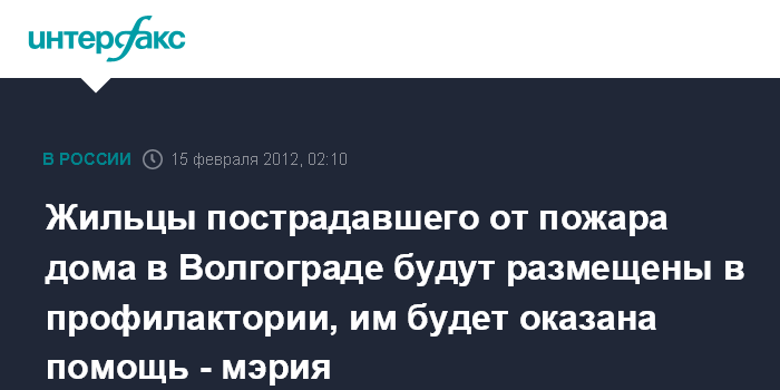 Волгоград. 15 февраля. ИНТЕРФАКС-ЮГ - Эвакуированные жильцы дома в Волгограде, в котором расположено сгоревшее кафе, будут размещены в профилактории, сообщил агентству "Интерфакс - Юг" представитель городской администрации Волгограда.