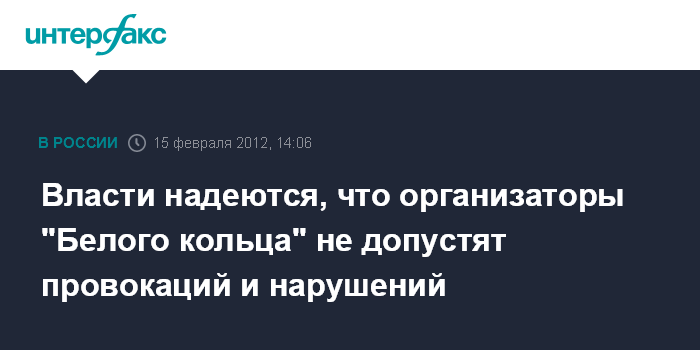 Власти надеются, что организаторы "Белого кольца" не допустят провокаций и нарушений