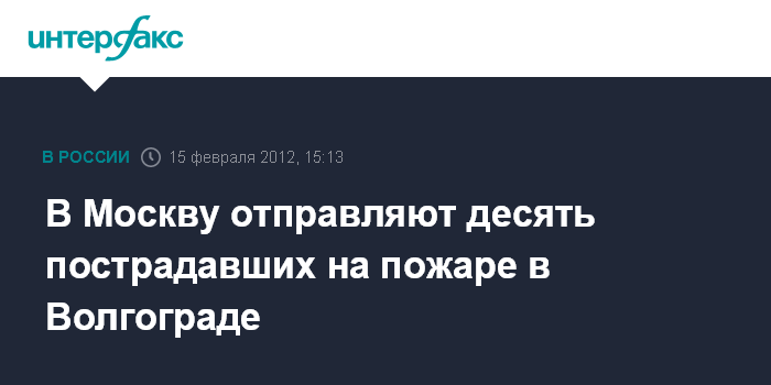Волгоград. 15 февраля. INTERFAX.RU - 10 пострадавших при пожаре в волгоградском кафе "Белладжио" будут отправлены на лечение в Москву, сообщили агентству "Интерфакс-Юг" в городской больнице №25 в среду.